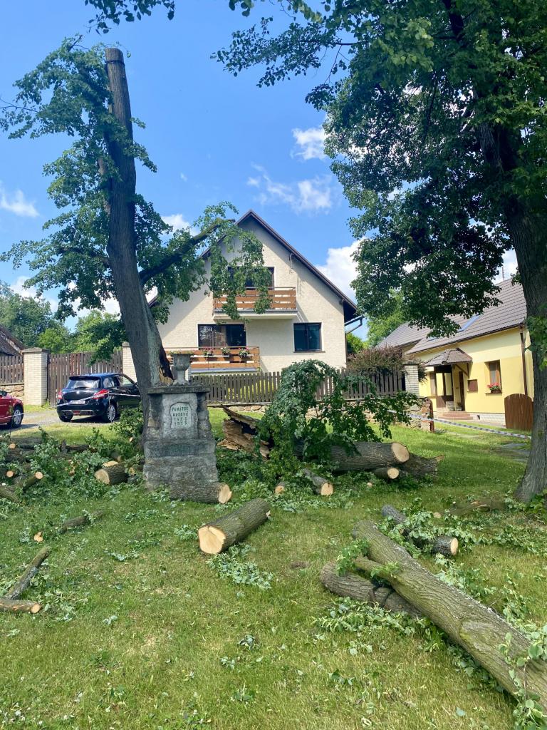 Počasí minulého týdne poznamenalo i zeleň v obci. Nápory větru nevydržela památná Husova lípa, která byla u Husova kamene zasazena společně s dalšími dvěma stromy při příležitosti 500. výročí upálení Jana Husa v roce 1915.