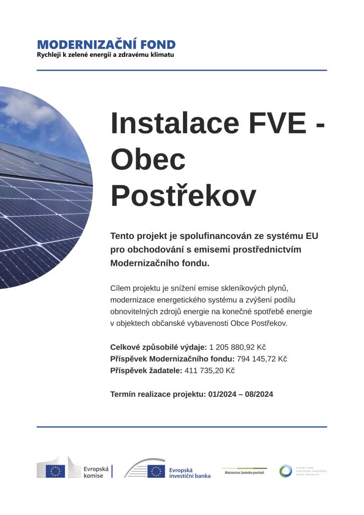 Obec letošní rok vybudovala na budově obecního úřadu fotovoltaickou elektrárnu o výkonu 17 kW s bateriovým úložištěm. Tento projekt přispívá ke snižování emisí skleníkových plynů a k úspoře energie.