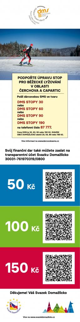 PODPOŘTE ÚPRAVU STOP PRO BĚŽECKÉ LYŽOVÁNÍ V OBLASTI ČERCHOVA A CAPARTIC. Pošlete dárcovskou DMS.