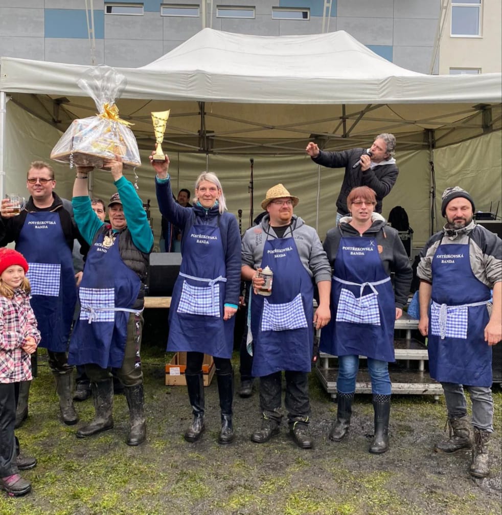 V sobotu 15. dubna se konal první ročník Mistrovství Chodska v pečení prasat. Ani nepříznivé počasí neodradilo odhadem přes 800 návštěvníků přijít na sokoliště v Domažlicích a rozhodnout o nejlepším týmu z deseti zúčastněných. Návštěvníci akce si u vstupu mohli zakoupit poukázku, na kterou jim bylo umožněno ochutnat celkem pět vzorků masa. Poukázka následně také sloužila k hlasování o nejlepším týmu. Hlavními iniciátory akce byl Jaroslav Lagron a Emil Duchoň. Postřekovští tvořili na akci celkem dvě družstva. Na celkovém prvním místě se nakonec umístilo družstvo s názvem „Postřekovská banda“ ve složení: Jaroslav Kučera (Pardál), Ludvík Strašlipka, Lenka Strašlipková, Květa Urbanová st., Květa Urbanová ml., Michaela Plotnarková, Vlastimil Urban a Josef Kodera. Družstvo svými obrázky prasátek podpořili i zdejší žáci základní školy, jejichž výtvory byly během akce k vidění na stánku na sokolišti. „Chceme poděkovat návštěvníkům za hojnou účast a za nečekaný úspěšný výsledek. Budeme se snažit toto první místo obhájit i v následujícím roce,“ uvádí Pardál. Druhá v soutěži skončila „Mrákovská jehla“ a třetí příčku obsadili „Klatovští špekouni“. Druhá skupina postřekovských s názvem „Krutina – Terze“ pak skončila na krásném čtvrtém místě. Ve skupině byl Mikuláš Terze, Josef Krutina, Jiří Závodný, Pavel Váchal a Iveta Havlovicová. „Myslím, že se nám grilování povedlo, nečekali jsme takový výsledek již v prvním ročníku, ohlasy lidí nás velmi těšily a víme, co do další soutěže vylepšit,“ uzavírá Mikuláš. Na akci zahrála také kapela The Bowře a děti potěšil program Culinky.