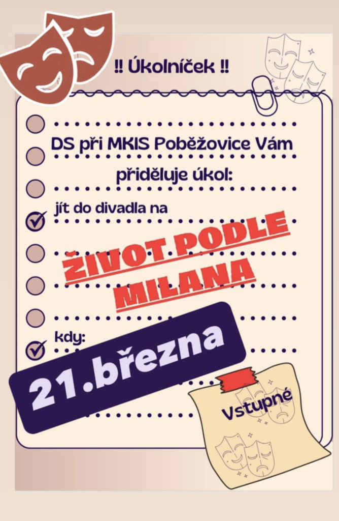 ASPV Postřekov Vás srdečně zve na divadelní představení DS při MKIS Poběžovice s názvem Život podle Milana.