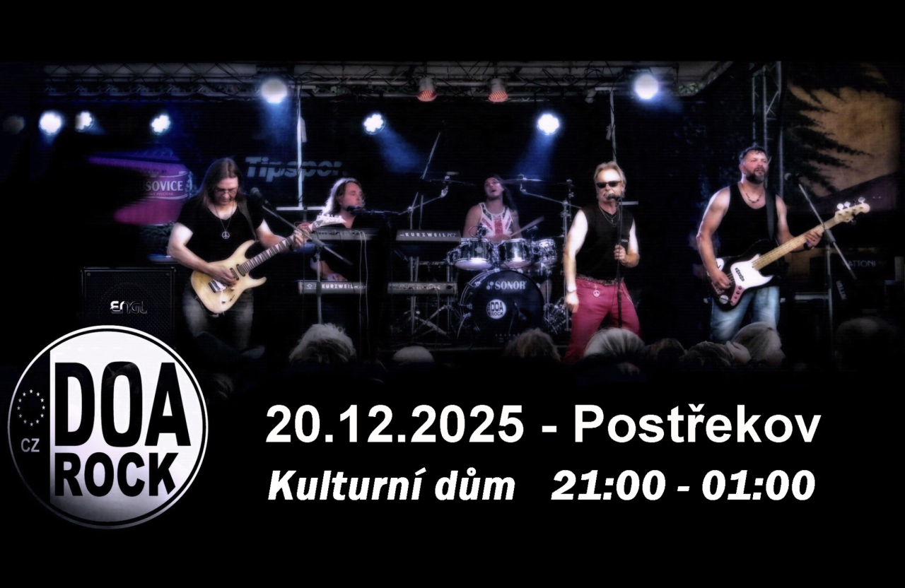 Pohostinství Špillarka Vás srdečně zve na koncert kapely DOA rock v sobotu 20. prosince od 21:00 v Obecním sále.