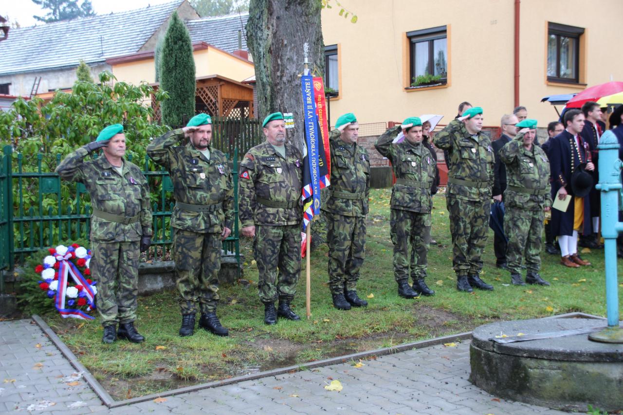 Přesně ve 13 hodin pak pietní akt zahájila Československá hymna. Po uvítání místostarostou obce Petrem Anderlem převzal slovo Jiří Knížek, který připomněl význam 28. října pro náš stát. Připomněl významnou roli československých legií, které T. G. Masarykovi, E. Benešovi, M. R. Štefánikovi a dalším pomohly položit základy nového státu Čechu a Slováků. Připomněl však také všechny padlé, kteří položili svůj život během první světové války v uniformách rakousko-uherských. Poté předal zástupce 1. tankové roty Jiří Řezníček pamětní medaile členům ČsOL a vyzval přítomné k minutě ticha za oběti nejen první světové války. Následovala píseň Zafúkyj větříčku v podání Národopisného souboru Postřekov. Na závěr pietního aktu pak byl položen věnec k pomníku padlých.