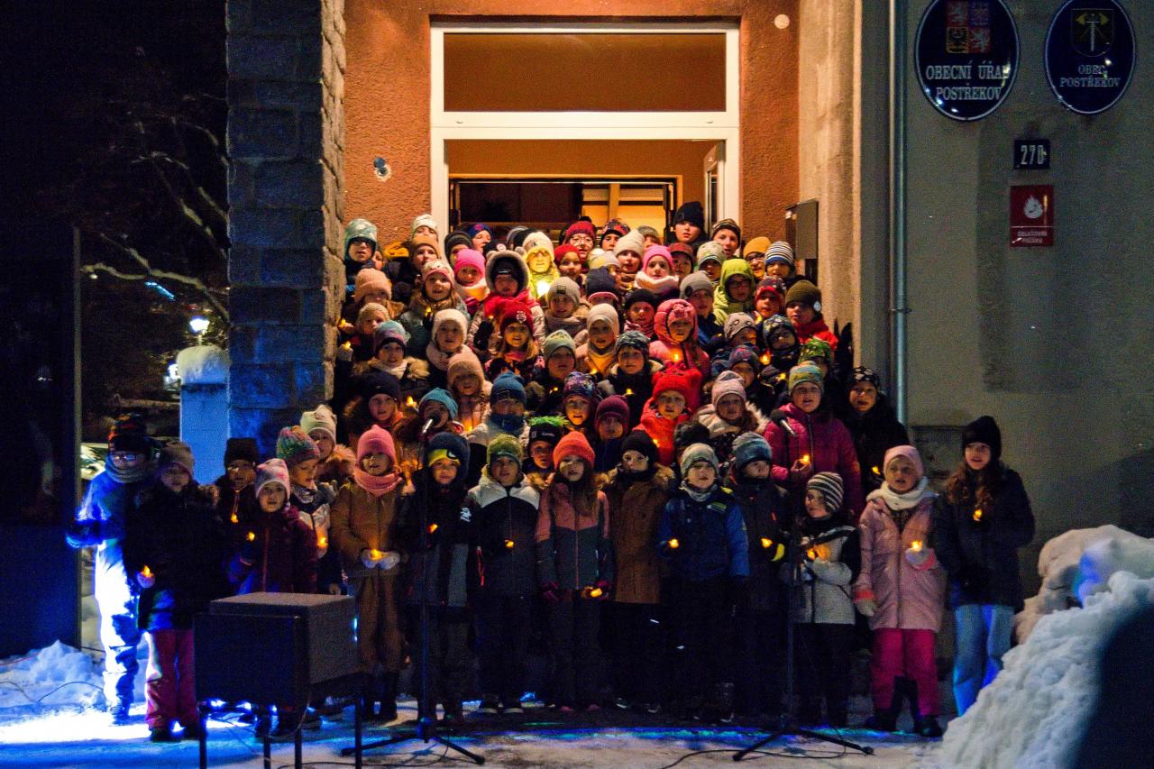 První adventní neděli se v obci rozsvěcoval vánoční stromeček, který pátek před tím nazdobili zaměstnanci a představitelé obce. Akci tradičně organizovala Základní a mateřská škola Postřekov ve spolupráci s obcí. V 17 hod. vyšel lampionový průvod od Hotelu směrem k obecnímu úřadu, kde všechny přítomné přivítala za kolektiv mateřské školy Věra Čechová, po které zazpívaly děti ze školky několik písníček. Pak se představili i žáci naší základní školy. Před jejich vystoupením ještě pár slov za školu řekla i Kateřina Kuboňová. Na konci vystoupení pak děti společně se všemi přítomnými odpočítali samotné rozsvícení stromku, který bude zdobit prostranství před obecním úřadem až do konce Vánoc, tedy do svátku Třech králů. Děti na závěr obdržely drobný dárek, který jim věnovala obec Postřekov a firma Stemont. Za tento dar firmě pana Jiřího Steinbergera moc děkujeme.